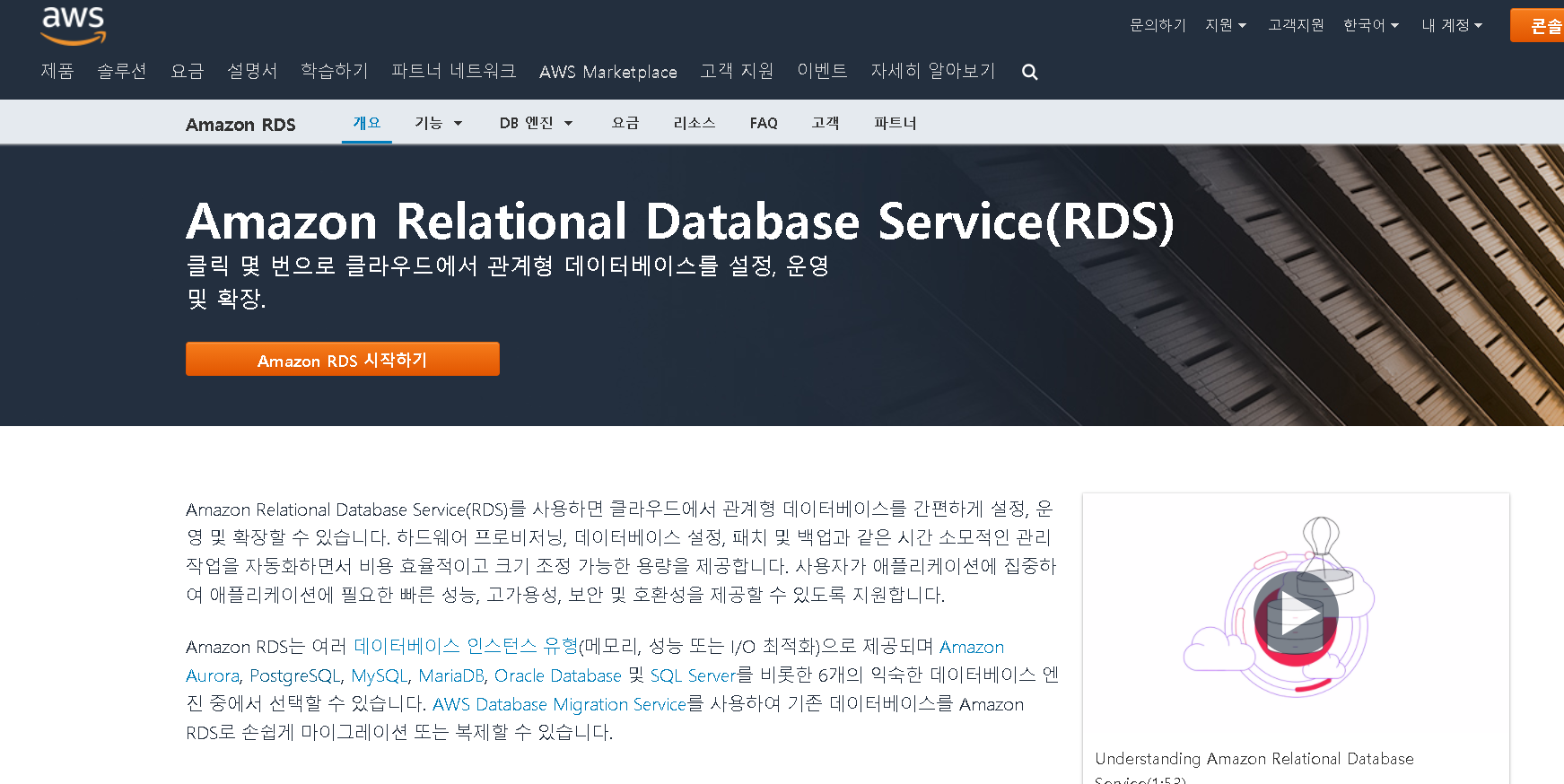Amazon Relational Database Service(RDS)를 사용하면 클라우드에서 관계형 데이터베이스를 간편하게 설정, 운영 및 확장할 수 있습니다. 하드웨어 프로비저닝, 데이터베이스 설정, 패치 및 백업과 같은 시