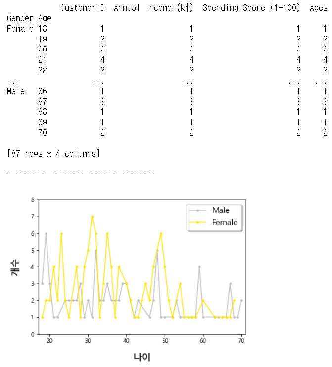 데이터가 200개밖에 되지 않아, 겹치는 연령 자체가 적어 Age를 그대로 사용하여 EDA를 보는 것 보다, 연령대를 나눠 EDA를 보는 것이 옳겠다고 판단했다.