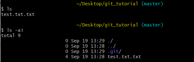 아래처럼, ls -al 명령어 실행 시, git init 명령을 한 이후에는 .git 폴더가 생긴 것을 알 수 있다.