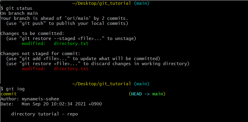 이때, 처음 push 이후의 push는 git push 만 작성해도 된다. (단, 등록한 origin의 main 브랜치에 저장이 될 것이다.)