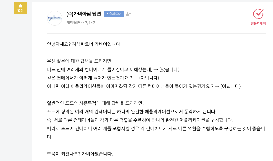 - 이때 여러 개의 컨테이너가 모여 하나의 파드가 된다. (그럼 이 파드가 완전한 어플리케이션이 된다.)