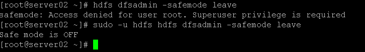 sudo -u hdfs hdfs dfsadmin -safemode leave