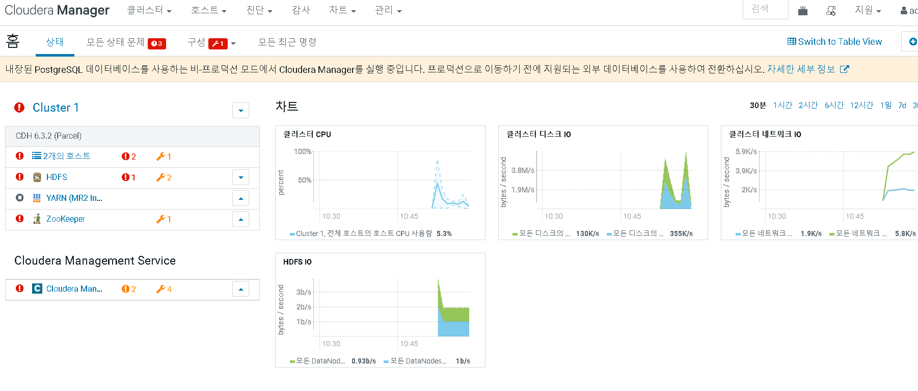 검색해보니, 클라우데라 매니저의 빨간 경고 창의 대부분은 파일럿 프로젝트 정도를 진행하는 데에서는 문제가 되지 않는다고 한다!