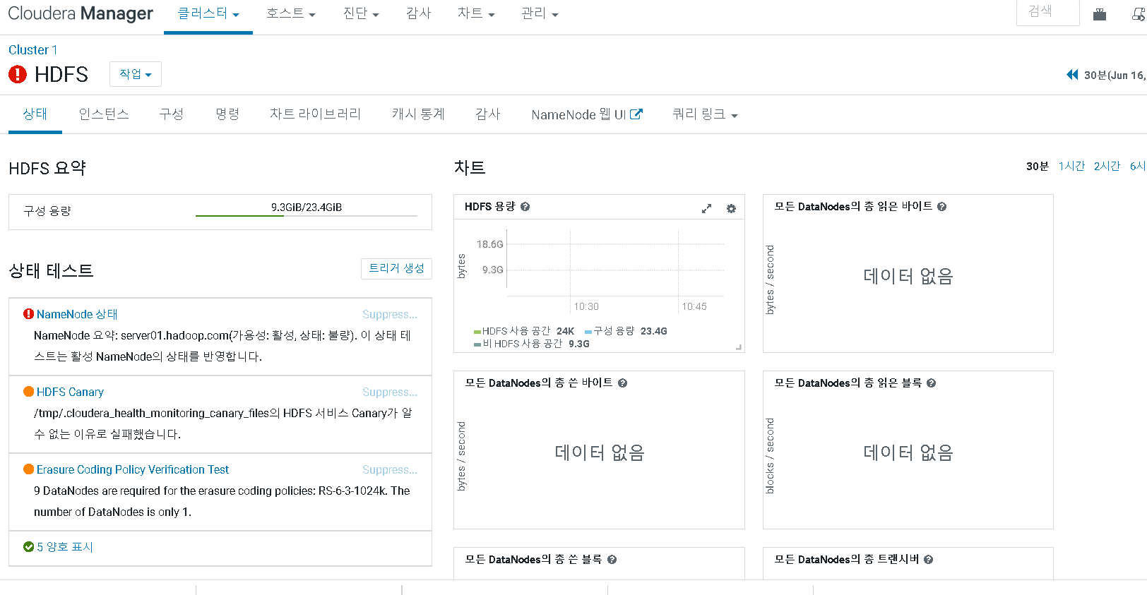 설치와 동시에 HDFS에서 먹통이 일어난 것!