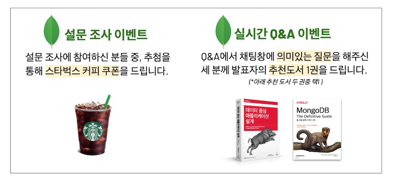 그리고, 예비 데이터 엔지니어로써 RDBMS와 NoSQL에 대해 공부하고 있기도 한다. 따라서, NoSQL 중에 인지도가 높은 MongoDB의 다양한 사례를 보면, 추후 인사이트를 넓히는 데에 도움이 될 것 같아 웨비나를 신청했다.